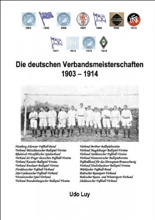 Die deutschen Verbandsmeisterschaften 1903 – 1914 Alle Endrundenspiele der damaligen Verbände, die berechtigt waren um die Deutsche Meisterschaft mitzuspielen. Jedes Spiel ist mit Vereinswappen, Mannschaftsaufstellungen, Torschützen, Zuschauerzahl, Schiedsrichter und besonderen Ereignissen erfasst – wenn Informationen darüber erhältlich waren. Ab der Saison 1902/03 sind die jeweiligen Endrunden der Verbände übersichtlich dargestellt, als Zusammenfassung und im Detail. Ca. 500 Mannschaftsbilder, Abbildungen von Spielszenen und Spielern sowie Spielankündigungen runden das Buch harmonisch ab. Endspiele der jeweiligen Verbände bzw. entscheidende Spiele bei der Austragung einer Meisterschaft durch Punktspiele sind ausführlich mit einem Spielbericht nachzulesen. 598 Seiten, 21x30 cm, Karton, ca. 500 Fotos, Selbstverlag 2021.